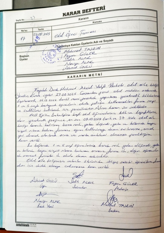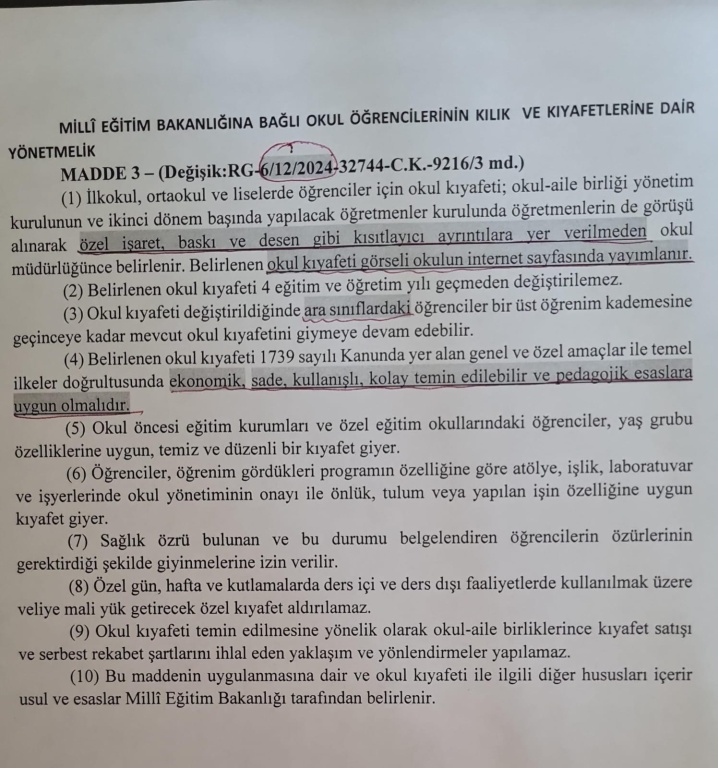 Milli Eğitim Bakanlığına Bağlı Okul Öğrencilerinin Kılık ve Kıyafetlerine Dair Yönetmelik gereğince okulumuz kıyafetlerinde herhangi bir değişiklik yapılmamıştır. Formamız daha önce kullanmış olduğumuz forma ile aynı olup sadece arma ve marka amblemi olmadan kullanılmaya devam edecektir. Öğrencilerimiz ellerinde olan formaları kullanmaya devam edebileceklerdir. Ancak 2025-2026 eğitim öğretim yılından itibaren 1.sınıfa ve 5. Sınıfa başlayan öğrencilerimiz logosuz, markasız ve armasız yeni formaları kullanacaktır.